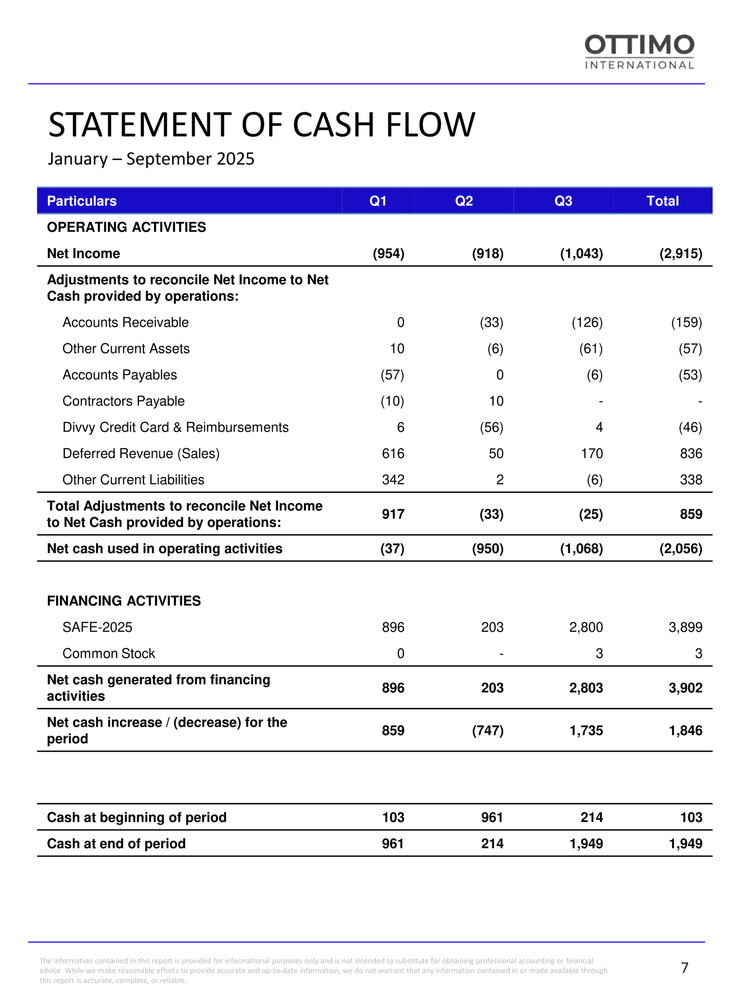 Cash Flow Monitoring